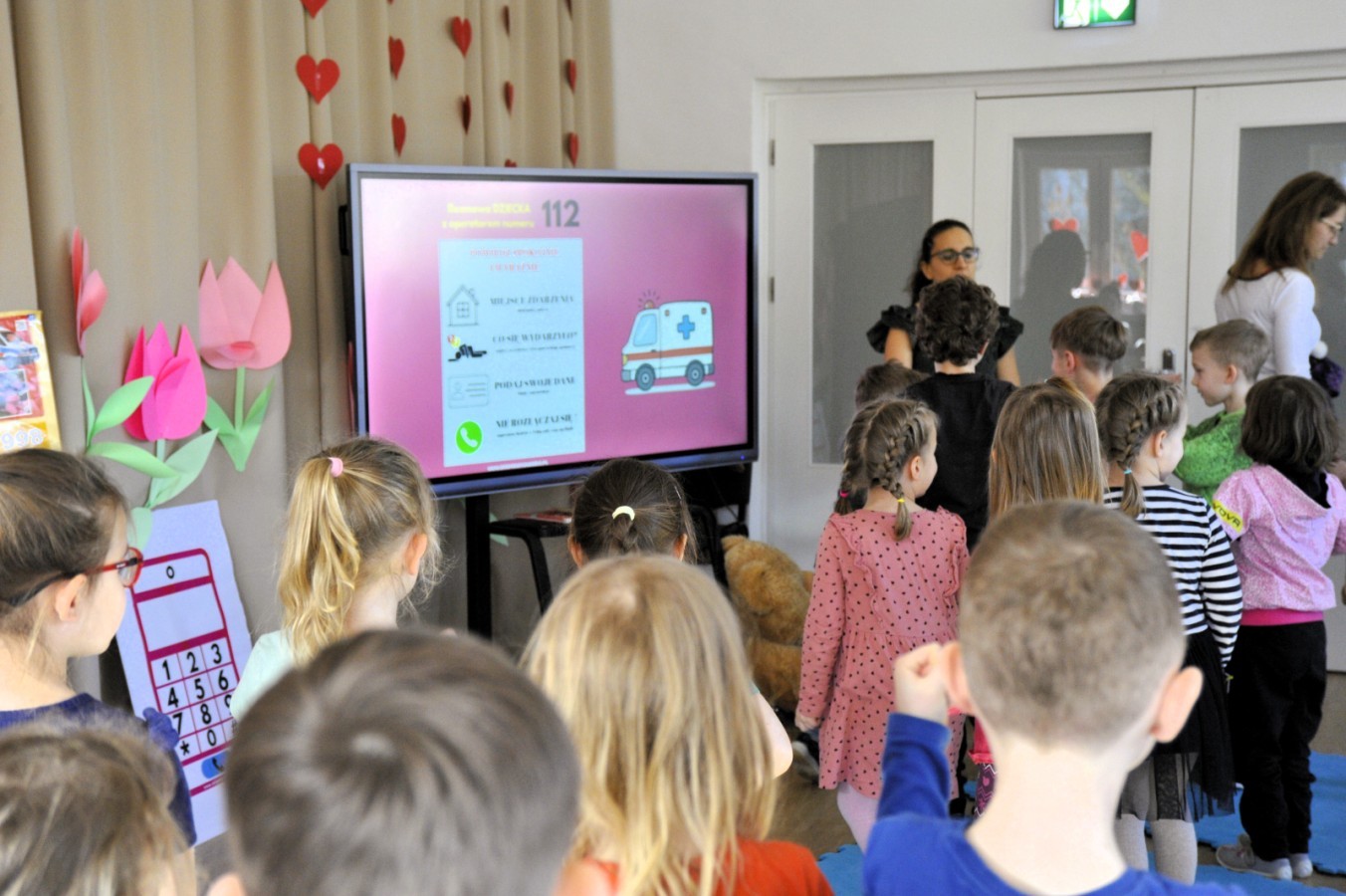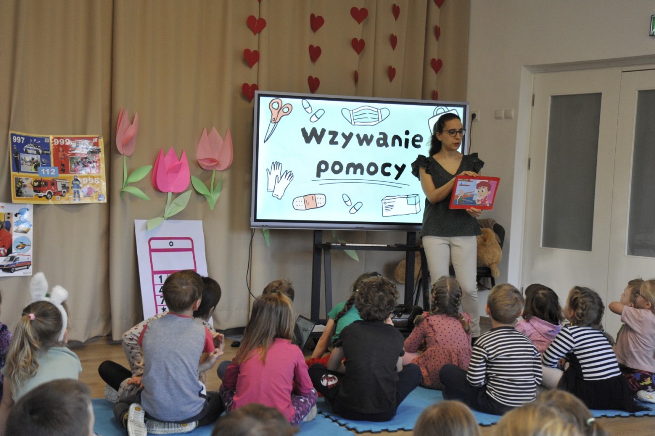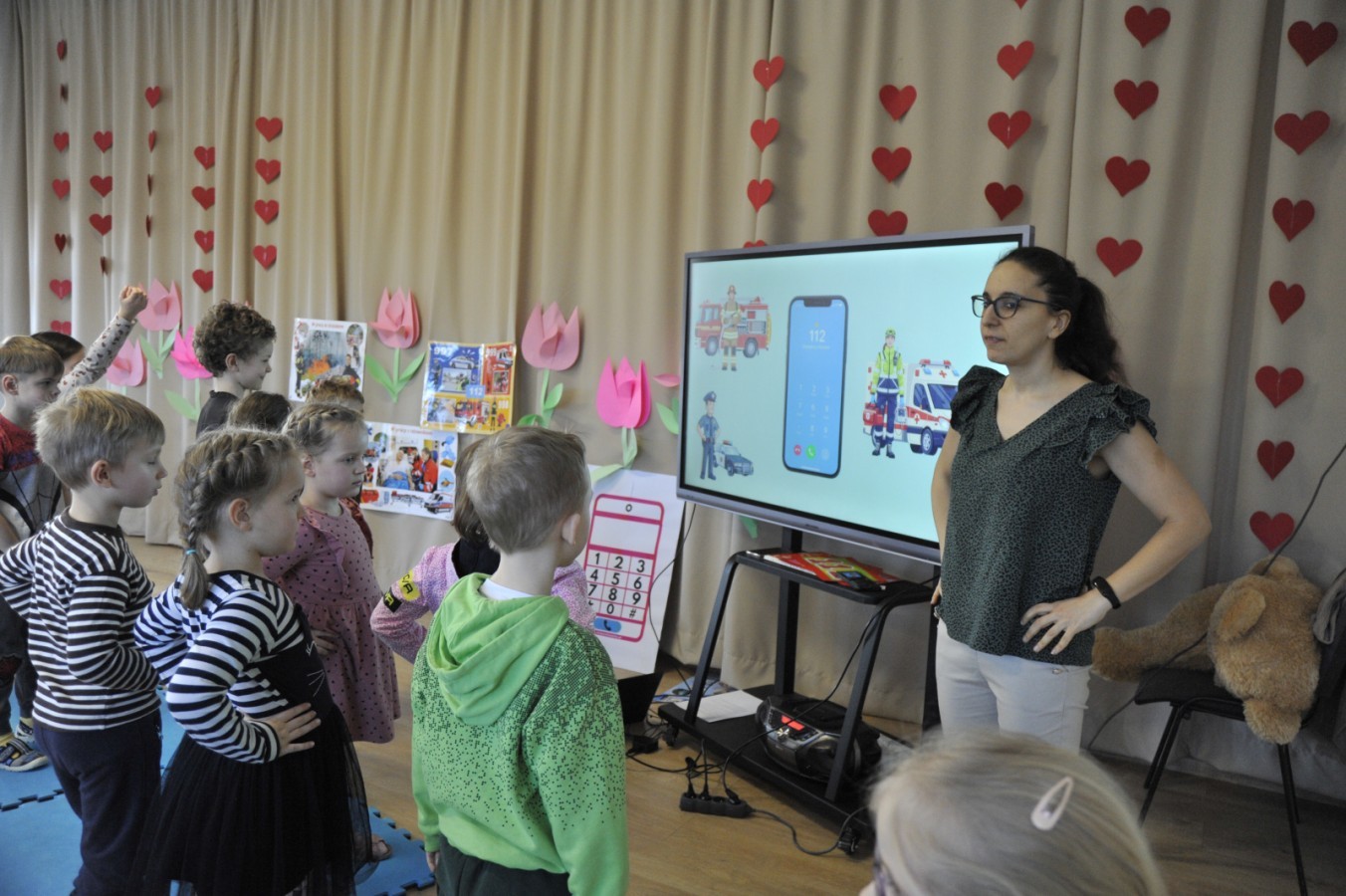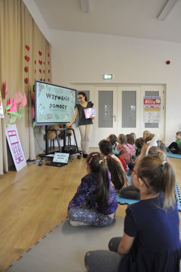 Podczas spotkania przedszkolaki poznały piosenkę „112” i utrwaliły numer alarmowy. Dzięki muzyce i wspólnej zabawie dzieci dowiedziały się, w jaki sposób prawidłowo wezwać pomoc oraz jakie informacje należy przekazać podczas rozmowy telefonicznej. Wysłuchały również bajki o jeżyku, który nauczył się, jak zachować się w trudnej sytuacji i skutecznie poprosić o wsparcie.