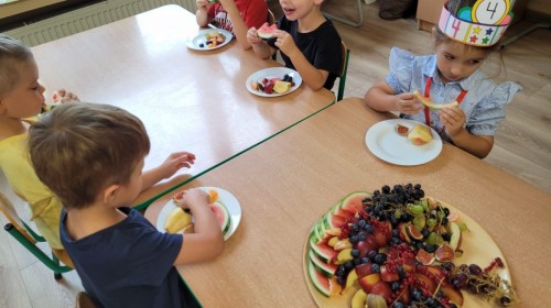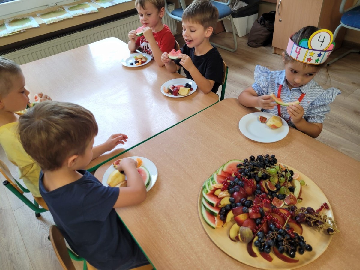 Końcem września Hania z Grupy II obchodziła swoje 4 urodzinki. Z tej okazji przyniosła dla dzieci poczęstunek - mnóstwo smacznych i zdrowych owoców!