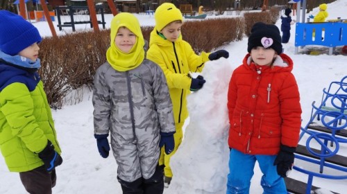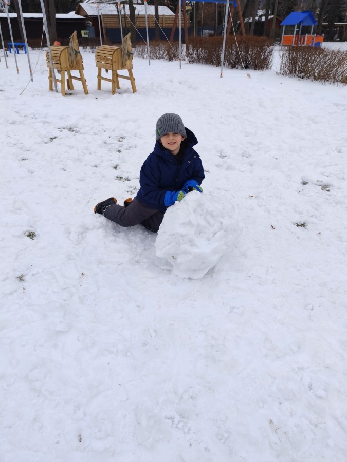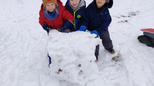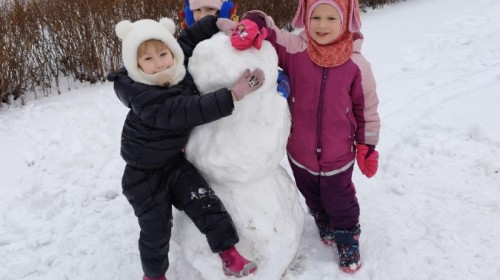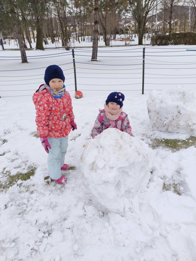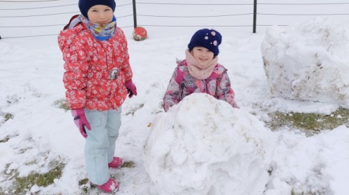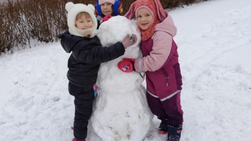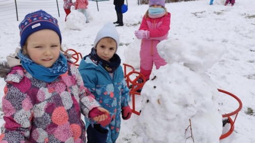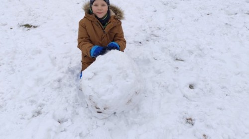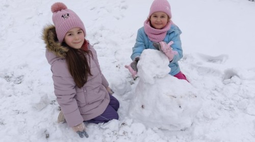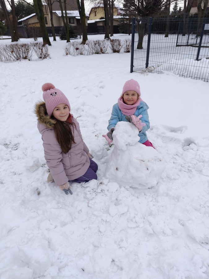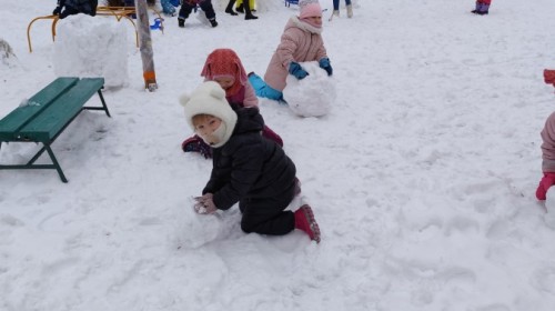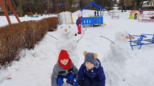 Na śniegu powstają bałwanki, aniołki, igloo i inne kreatywne rzeźby.