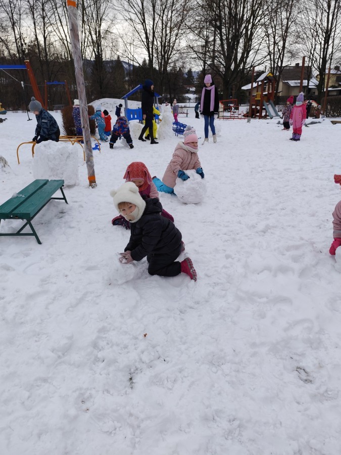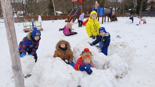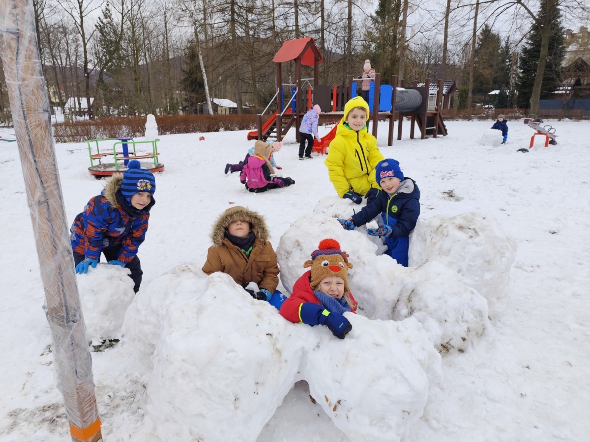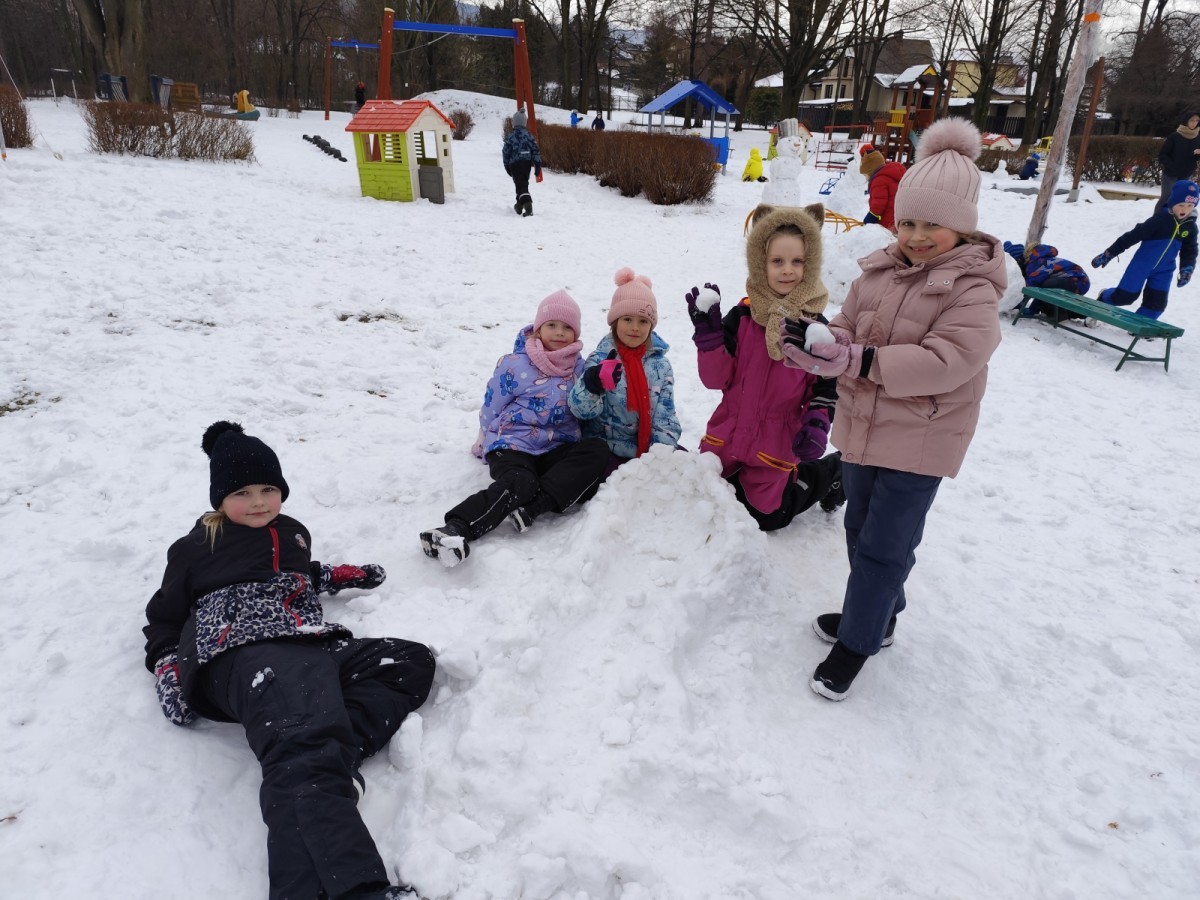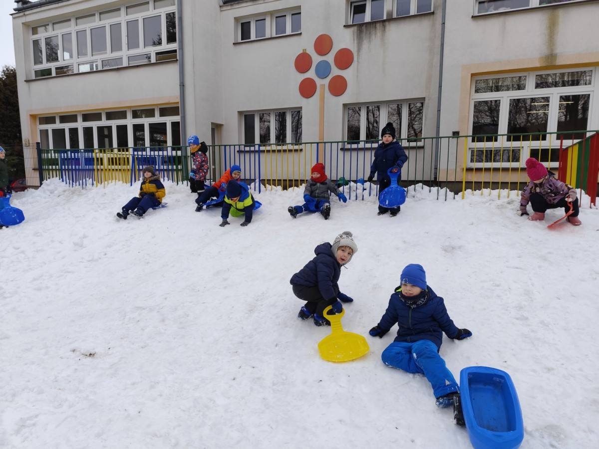 Zima w pełni, dlatego nasze przedszkolaki korzystają z jej uroków.